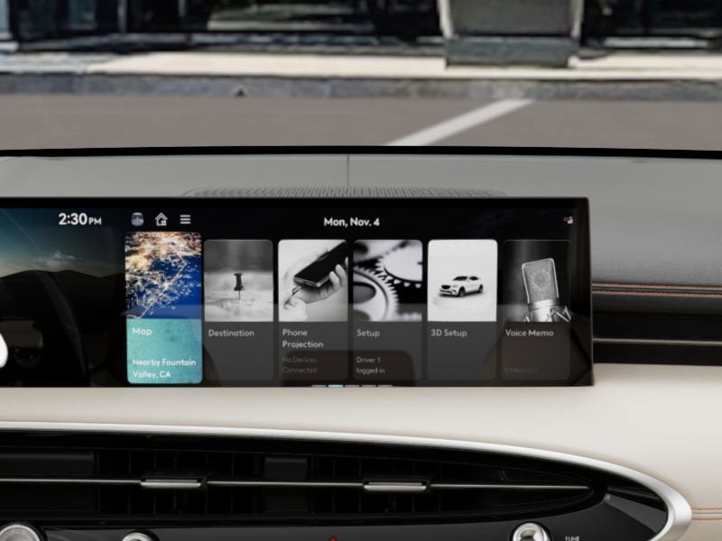 - Radio: 14.5" Navigation System w/AM/FM/HD Radio -inc: SiriusXM radio w/90-day trial subscription (N/A in AK or HI), wireless Android Auto and Apple CarPlay, cloud connected platform, Genesis Connected Services, dynamic voice recognition, Bluetooth® hands-free phone & audio streaming system, Bang & Olufsen sound system w/16 speakers, WiFi hotspot, internal amplifier and USB port