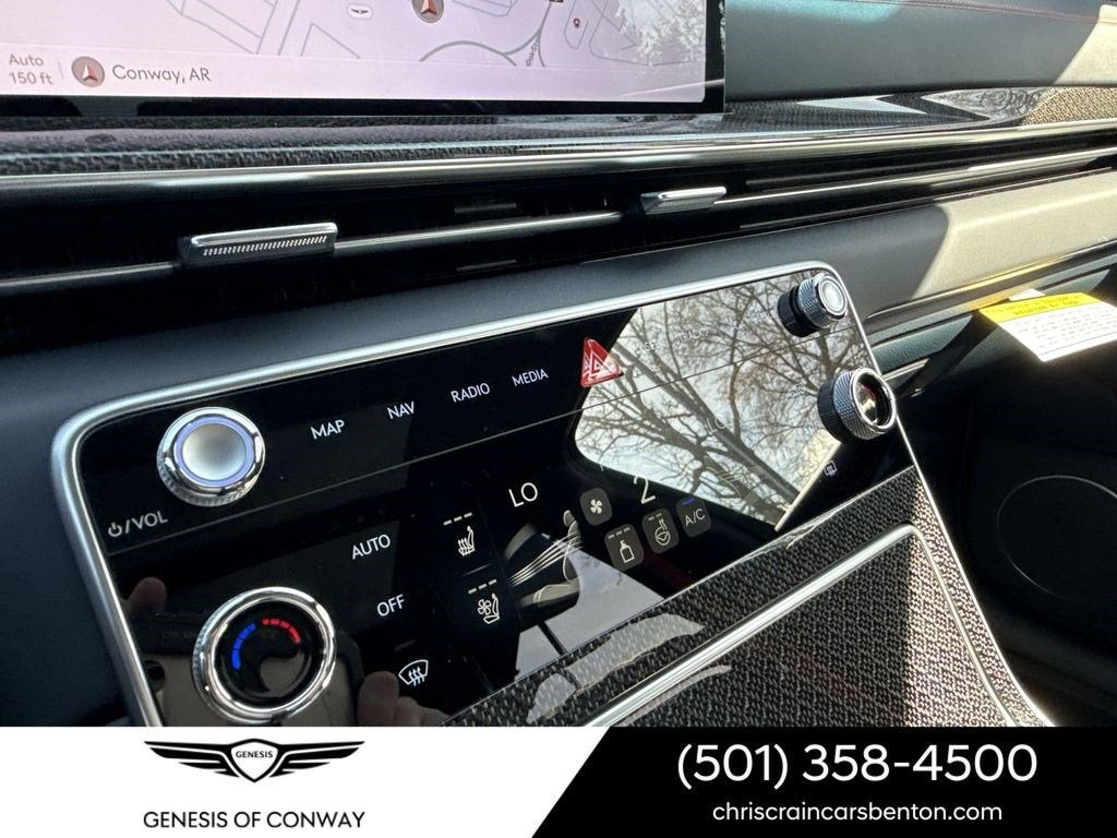 - Radio: AM/FM/HD Bang & Olufsen Premium Audio -inc: 18 speakers, 14-channel amplifier w/1,400 watts max output, 27" integrated OLED screen and navigation system, SiriusXM Radio w/90-day trial subscription (not available in AK or HI), wireless Apple CarPlay and Android Auto, Genesis connected services, Bluetooth® hands-free phone and audio streaming system, Wi-Fi hotspot and USB connectivity
