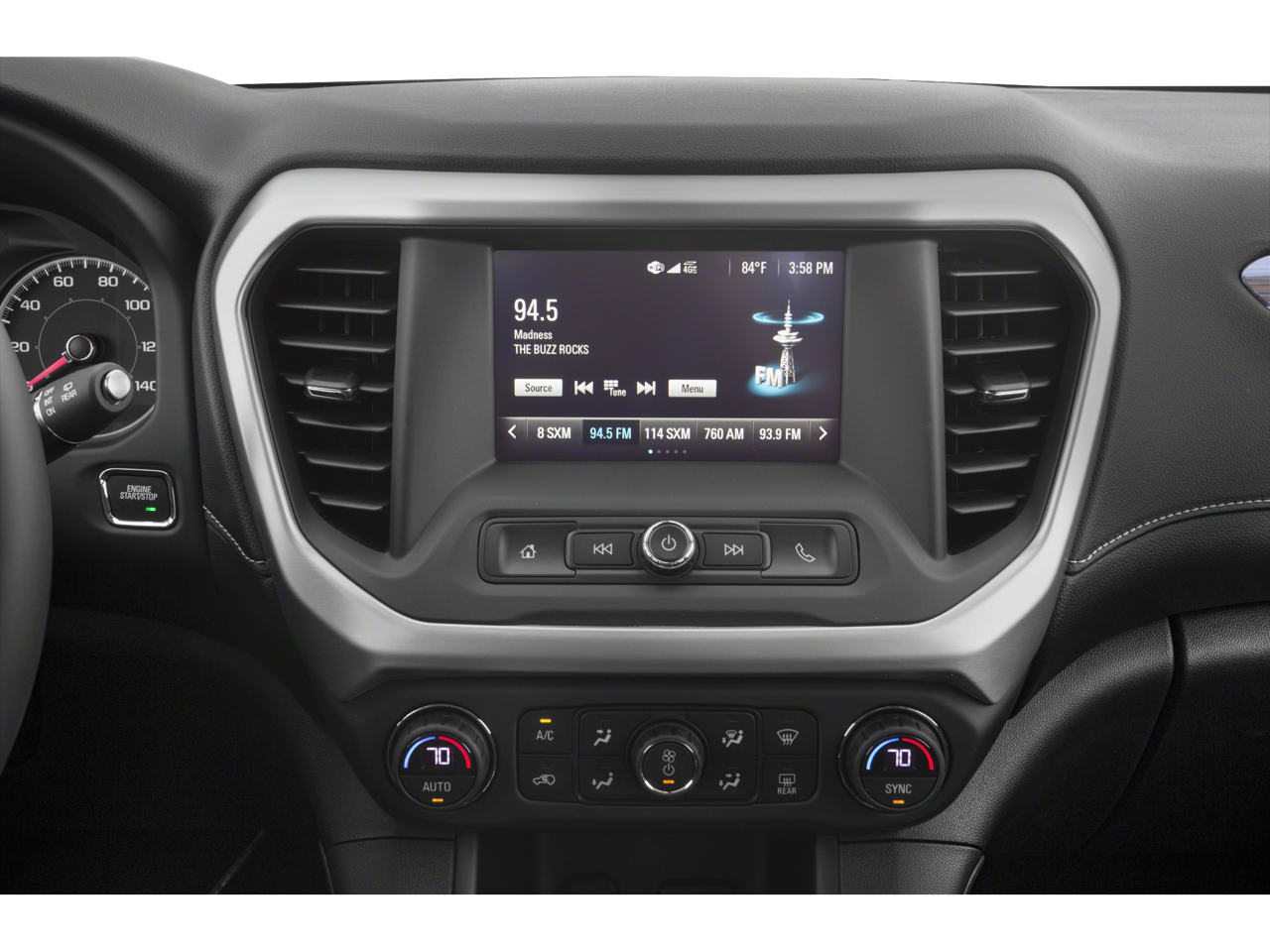 - Audio system, 7" diagonal Color Touch Screen with GMC Infotainment System, AM/FM with USB ports, auxiliary jack, Bluetooth® streaming audio for music and most phones, Apple CarPlay, Android Auto and voice command pass-through to phone (Includes (U2K) SiriusXM Satellite Radio.)
