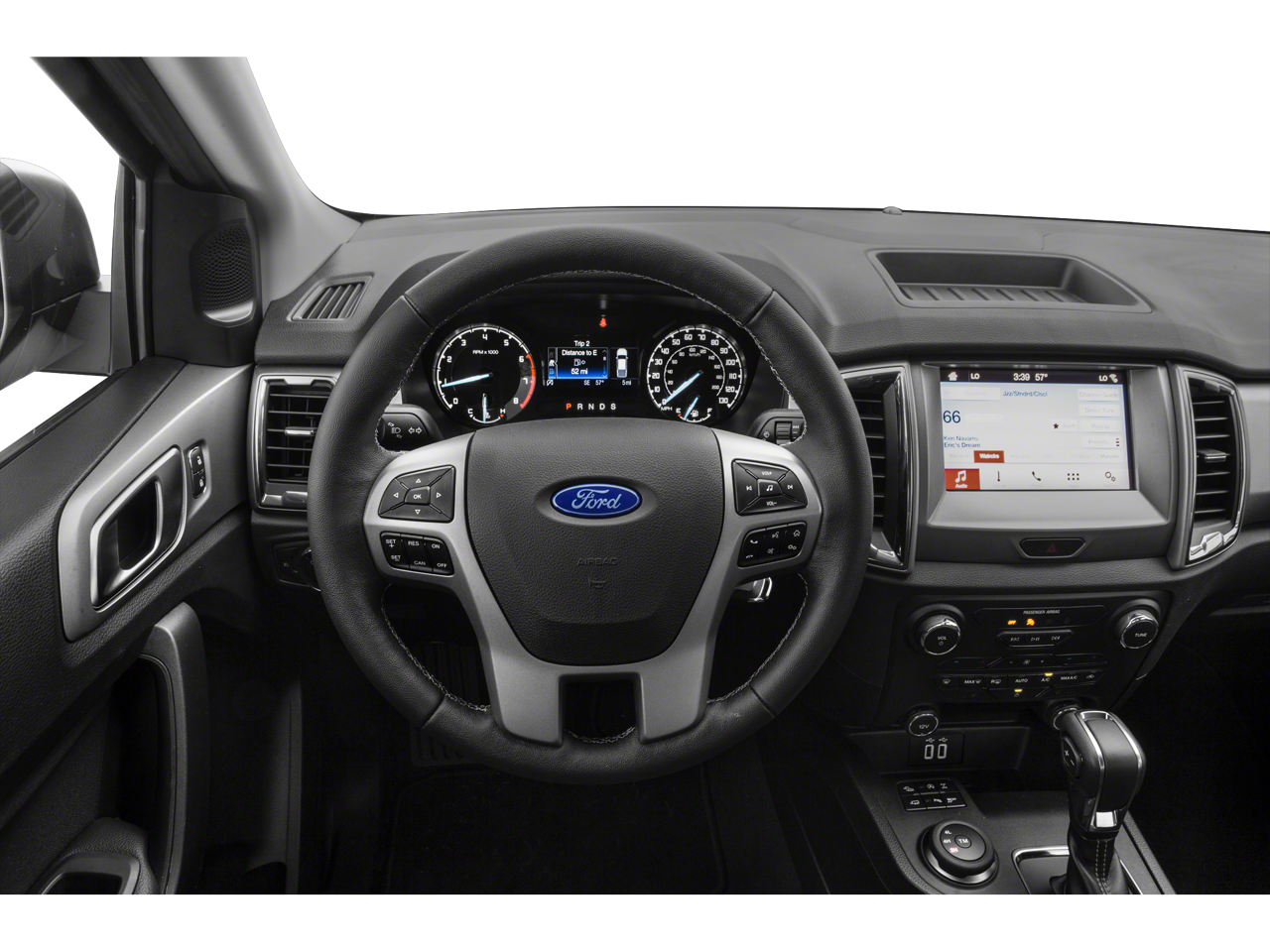Inside, the Ranger XLT offers a well-appointed and comfortable cabin, with premium cloth bucket seats, dual-zone automatic climate control, and the intuitive SYNC 3 infotainment system. Stay connected and in control with features like Bluetooth® connectivity, a backup camera, and remote start, all designed to enhance your driving experience.