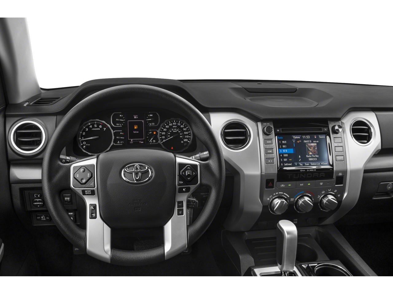 Designed with your comfort in mind, the Tundra SR5 offers a spacious and well-appointed interior. The front bucket seats with 10-way power-adjustable driver's seat and 4-way manual adjustable front passenger seat ensure a customized fit. The urethane tilt/telescopic steering wheel and floor-mounted shift lever provide a refined and intuitive driving experience.