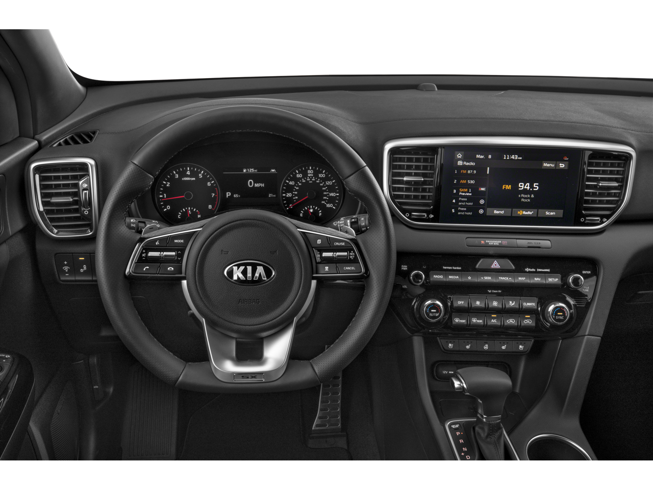 Step inside and experience the refined cabin of the Sportage SX. The Leather Seat Trim and Heated & Ventilated Front Bucket Seats provide unmatched comfort, while the Leather steering wheel and Steering wheel mounted audio controls offer a premium, driver-focused experience. The Rear Bumper Applique and 19 Alloy Wheels add a touch of style to this already stunning SUV.