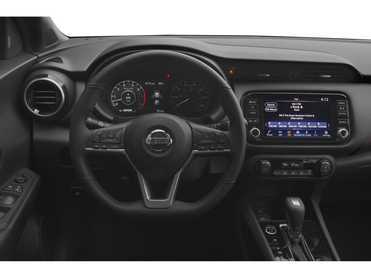 Inside, the Kicks SR pampers you with thoughtful details, including a Bose Personal Plus Audio System, Heated Front Seats, a Heated Steering Wheel, and a Security System. The Prima-Tex Appointed Seat Trim and NissanConnect Services further elevate your driving experience.