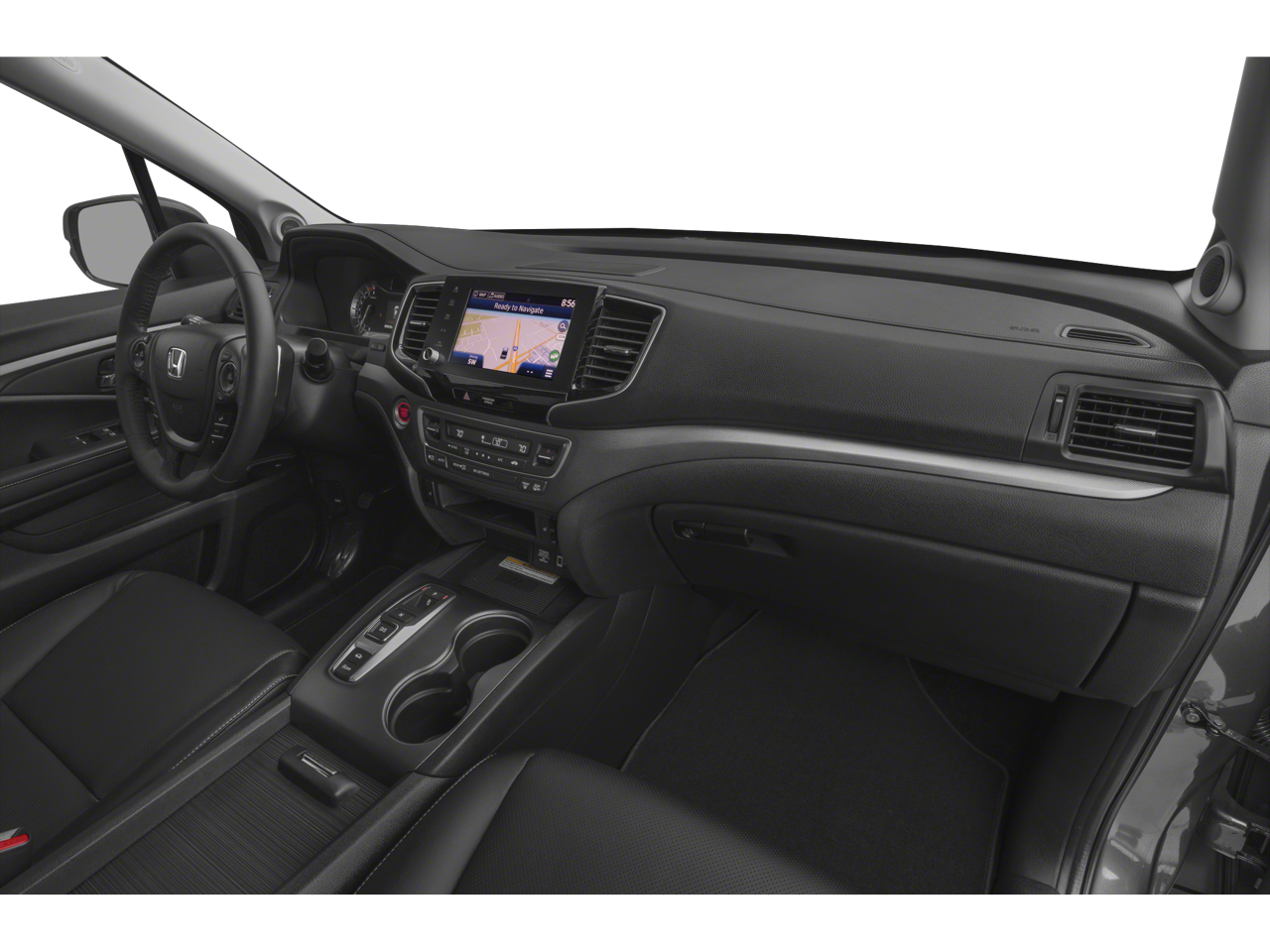Comfort and convenience are at the forefront, with dual-zone automatic climate control, a power driver's seat, and a heated steering wheel. The Ridgeline's spacious and versatile interior offers ample room for passengers and cargo, with a split-folding rear seat and a large, lockable truck bed.