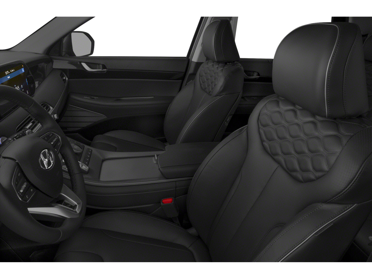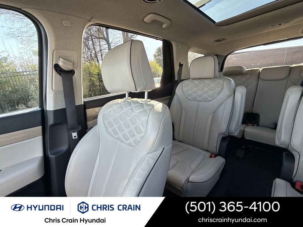 Stepping inside, you'll be greeted by a spacious and well-appointed cabin, featuring premium Nappa Leather Seat Trim, Heated and Ventilated Front Bucket Seats, Heated Rear Seats, and a Reclining 3rd Row Seat. The Palisade's advanced technology, including the Heads-Up Display, Blind Spot Monitoring, and Rear Cross-Traffic Alert, ensures a safe and connected driving experience.