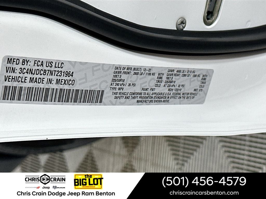 Elevate your commute or weekend adventures in the 2022 Jeep Compass Limited. With its spacious interior, versatile cargo area, and advanced safety technologies, this SUV is ready to adapt to your every need. Experience the perfect balance of style, comfort, and capability that the Compass Limited provides.