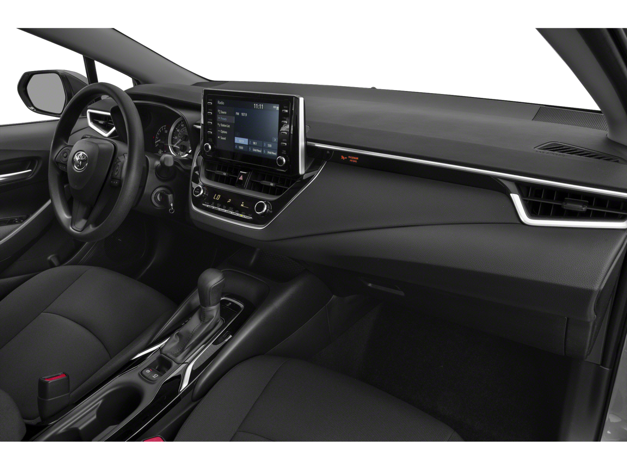 The interior of the Corolla LE is designed with your comfort in mind. The Front Bucket Seats, Front Center Armrest, and Premium Fabric Seat Trim provide a luxurious and supportive seating experience, while the Split folding rear seat allows you to accommodate your cargo needs with ease.