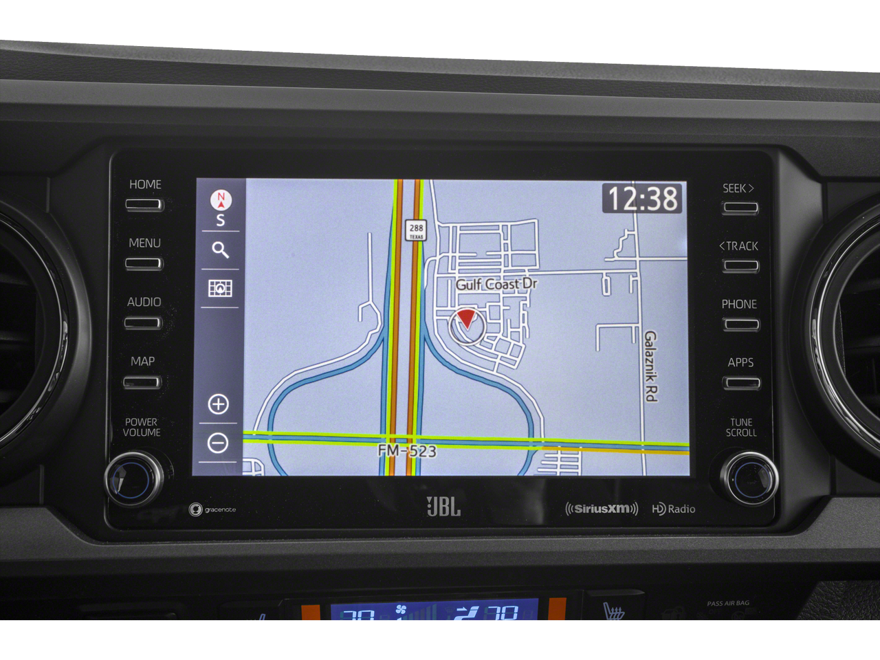 Safety is a top priority, and the Tacoma TRD Pro delivers with a comprehensive suite of advanced driver-assistance technologies. Blind Spot Monitor with Rear Cross-Traffic Alert, Lane Change Assist, and Rear Parking Assist Sonar help you navigate with confidence, while the Emergency Communication System with a 1-year trial provides added peace of mind.