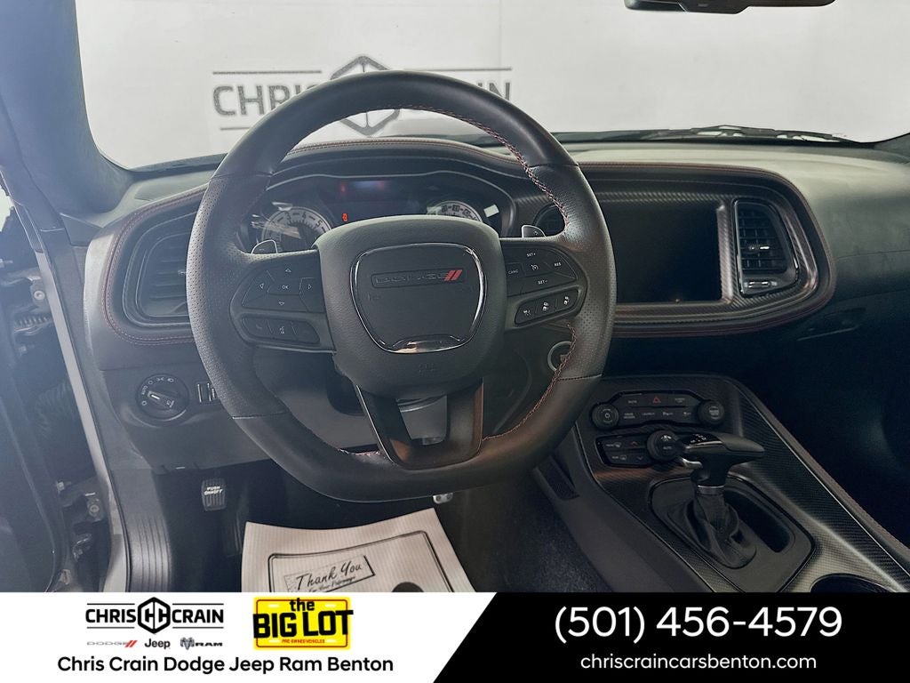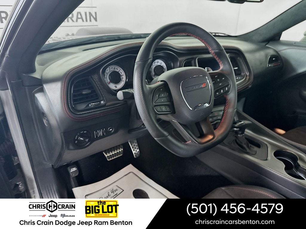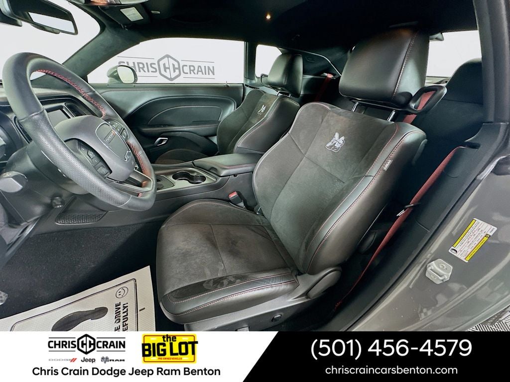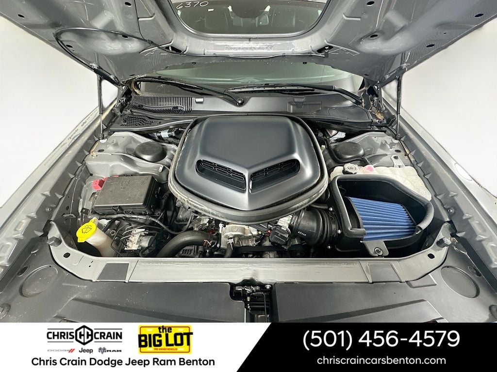 Boasting a powerful SRT HEMI 6.4L V8 engine mated to an 8-speed automatic transmission, this Challenger delivers an exhilarating 485 horsepower and 475 lb-ft of torque. With its rear-wheel-drive configuration and adaptive damping suspension, you'll enjoy precise handling and a thrilling ride every time you get behind the wheel.