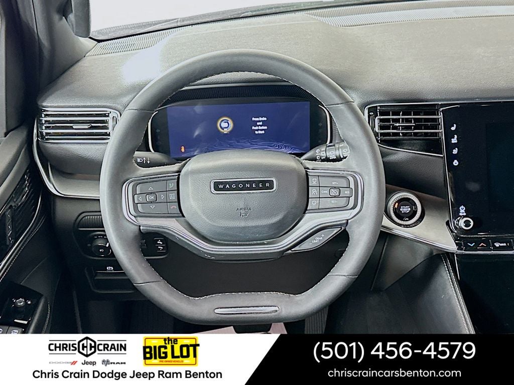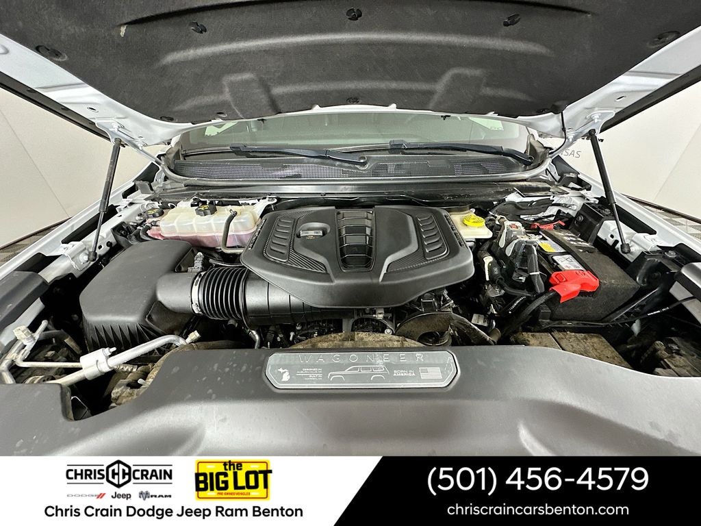 Powered by a 3.0L I6 Hurricane SO Twin Turbo engine and an 8-speed automatic transmission, this Wagoneer delivers an impressive blend of power and efficiency, with an EPA-estimated 24 mpg on the highway. The quick order package 25F Carbide further enhances the Wagoneer's premium features, including a 10.1 Uconnect 5 navigation system, a 3-panel sunroof, and a power liftgate.