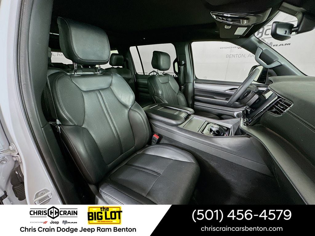 Step inside and you'll be greeted by a luxurious cabin adorned with genuine wood accents, heated and ventilated front seats, and a premium 10-speaker audio system. The Wagoneer's spacious interior and versatile cargo capacity make it the perfect companion for family adventures, weekend getaways, and everything in between.