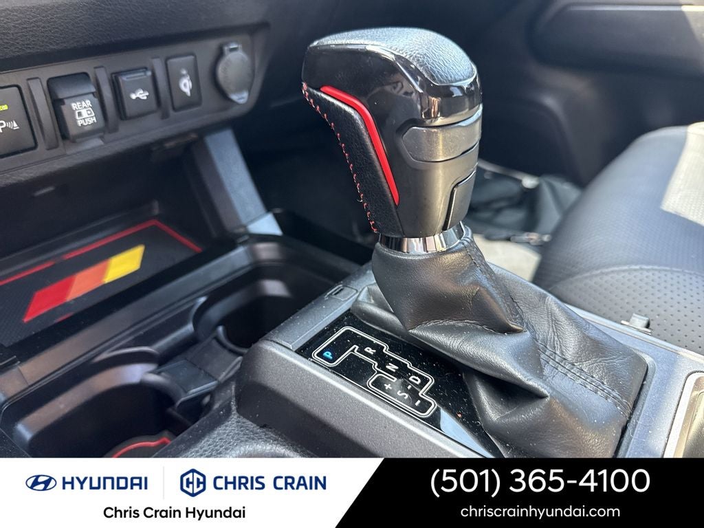 But the standout features don't stop there. Enjoy the convenience of the 120V/400W Deck Mounted AC Power, Auto High-beam Headlights, Front Fog Lights, Black Overfenders, Illuminated Entry, Outside Temperature Display, Tachometer, and Engine Immobilizer. The Front Door Smart Key System with Push Button Start and Power Sliding Rear Window with Privacy Glass add to the Tacoma's impressive list of premium amenities.