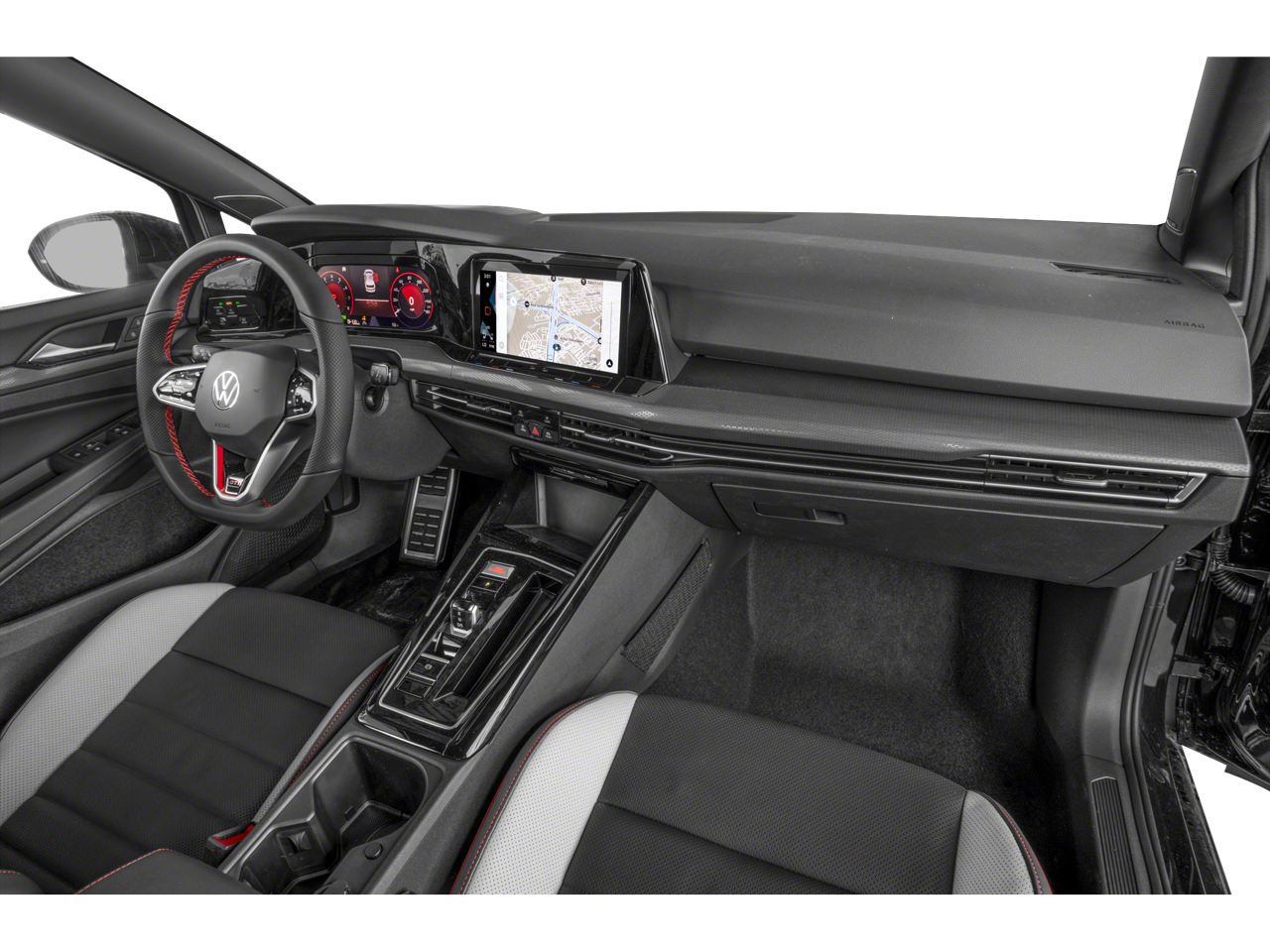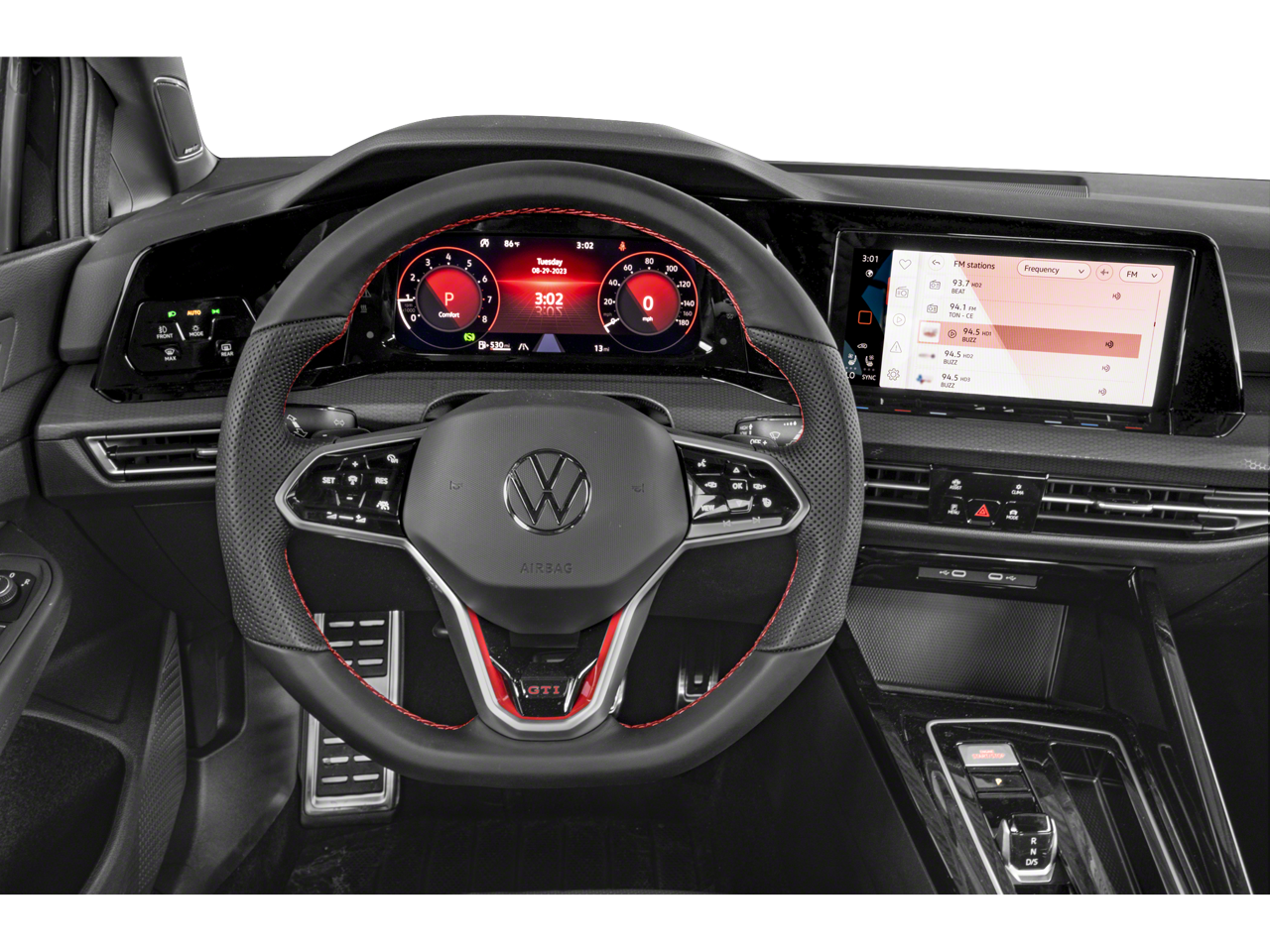 The Golf GTI Autobahn's sleek and sophisticated exterior is complemented by its meticulously crafted interior, which seamlessly blends style and functionality. Enjoy the convenience of advanced driver-assistance technologies, such as Forward Collision Warning with Autonomous Emergency Braking, Blind Spot Monitoring, and more, providing you with added peace of mind on every journey.