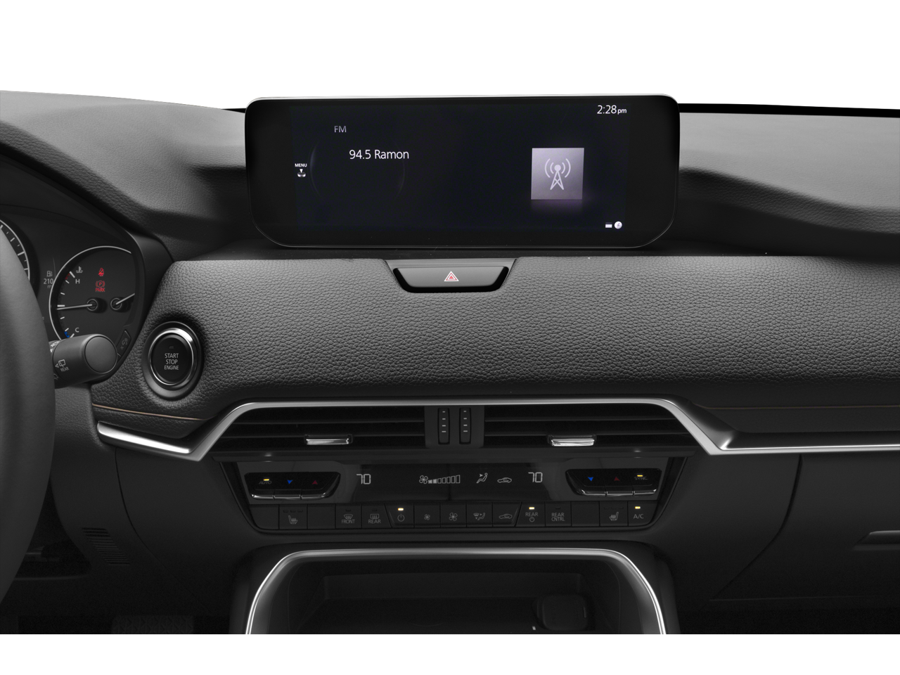 Step inside the CX-90 and you'll be greeted by a spacious and meticulously crafted cabin, featuring premium Leather Seat Trim, Heated Front Bucket Seats, and a host of advanced technology features. The Infotainment System with Voice Command, Pandora Internet Radio Integration, and Mazda Connected Services ensure you stay connected and entertained on every journey.