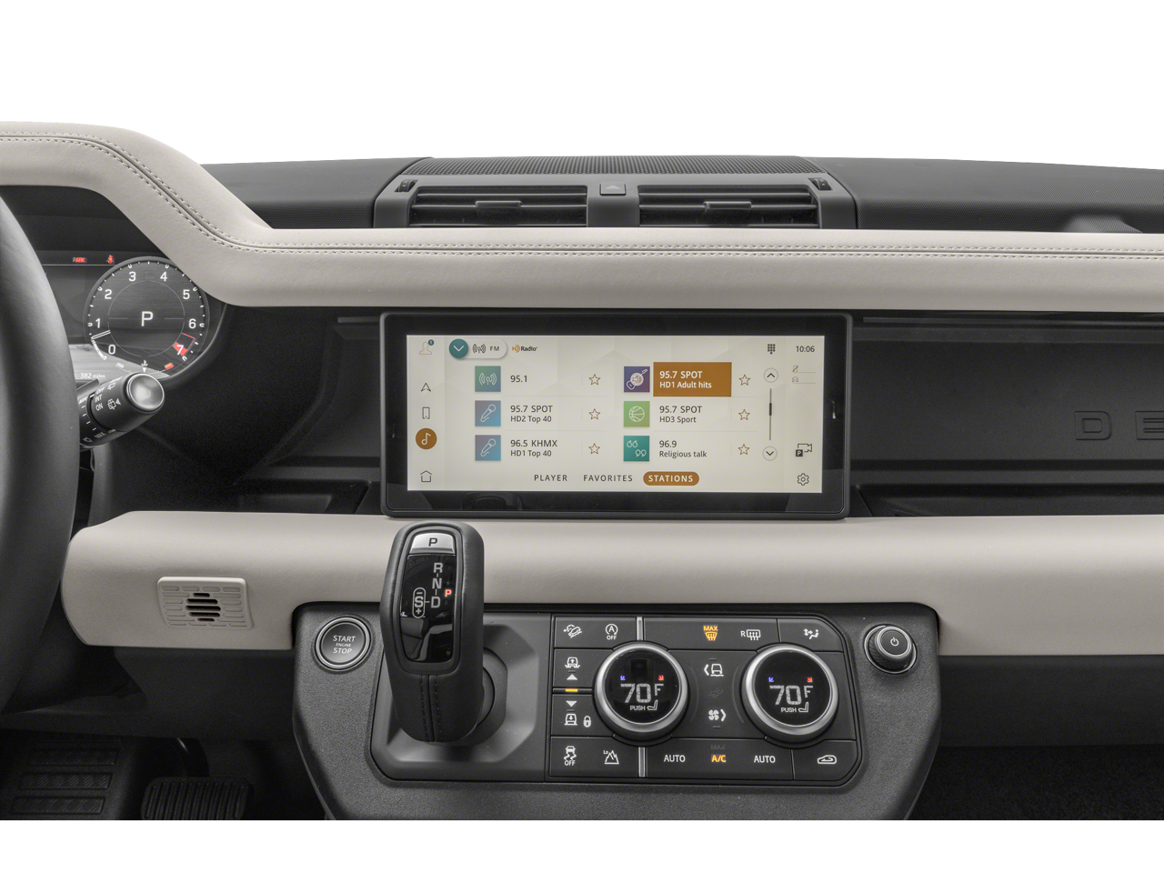 The Defender's spacious and well-appointed cabin is a true sanctuary, offering a range of premium amenities to enhance your driving experience. From the advanced infotainment system with Apple CarPlay and Android Auto integration to the luxurious Grained Leather & Robustec Seat Trim, every detail has been carefully crafted to provide unparalleled comfort and convenience.