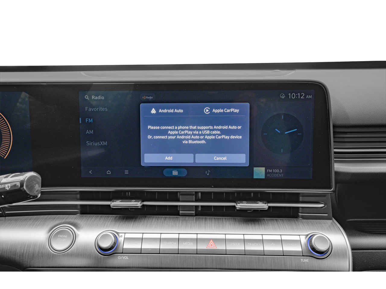 - Radio: AM/FM/HD Radio/SiriusXM Audio System -inc: 12.3" touchscreen audio display, Bluetooth®, 6 speakers, wireless Android Auto and Apple CarPlay compatibility, Bluelink connected car system, OTA software updates and USB connectivity