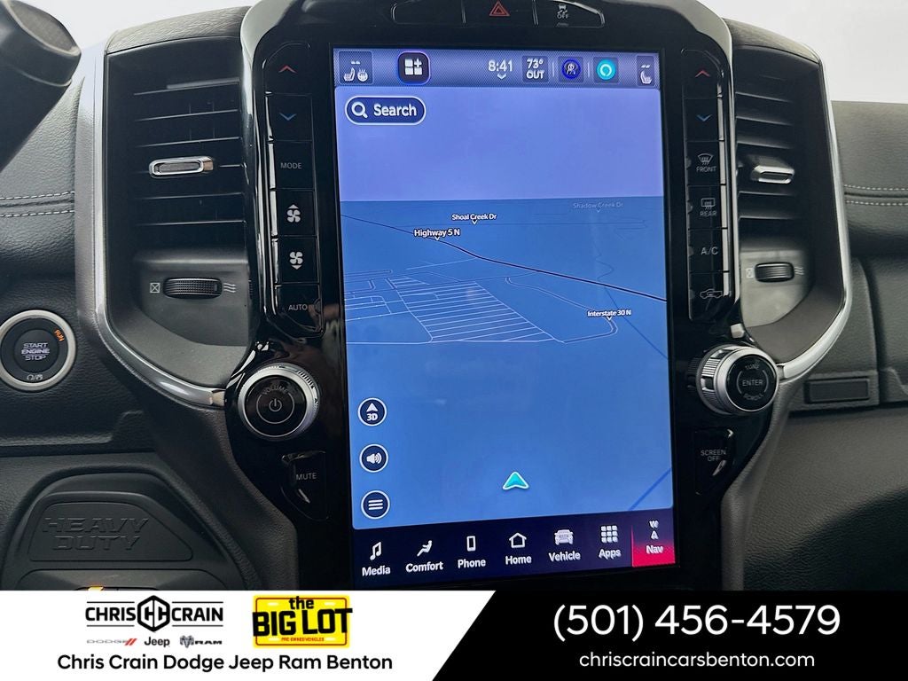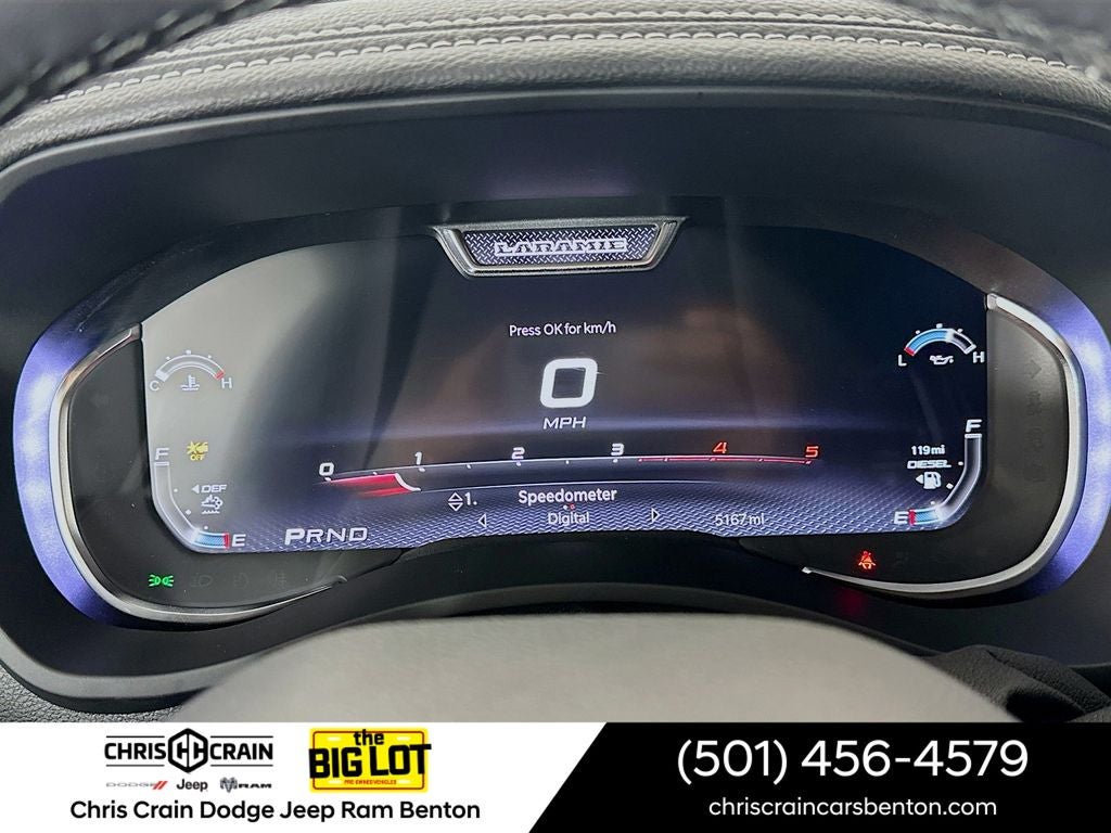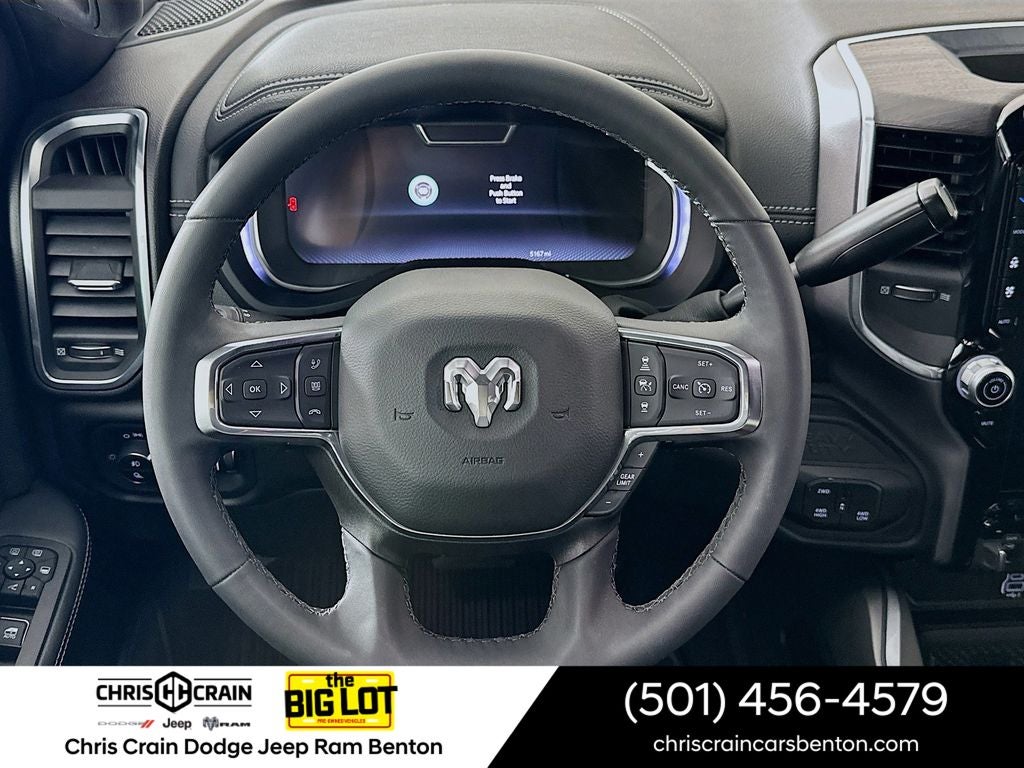 The Laramie's premium leather-trimmed bucket seats, heated steering wheel, and dual wireless charging pads ensure you and your passengers travel in the utmost comfort. The 50-gallon fuel tank and auto-leveling rear air suspension further enhance the Ram's impressive capabilities, allowing you to conquer any task with ease.